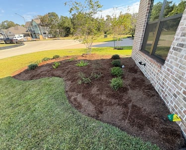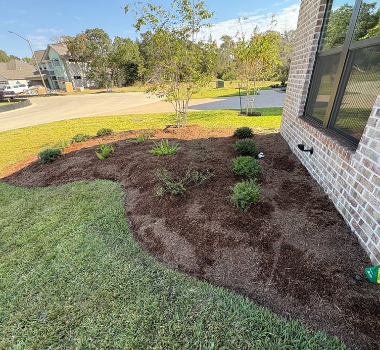 Landscape remodel with deep edge design and cedar mulch in College Station, TX.