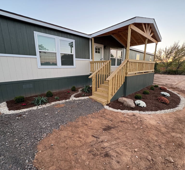Landscape design and construction for a new double-wide home in Weatherford, TX.